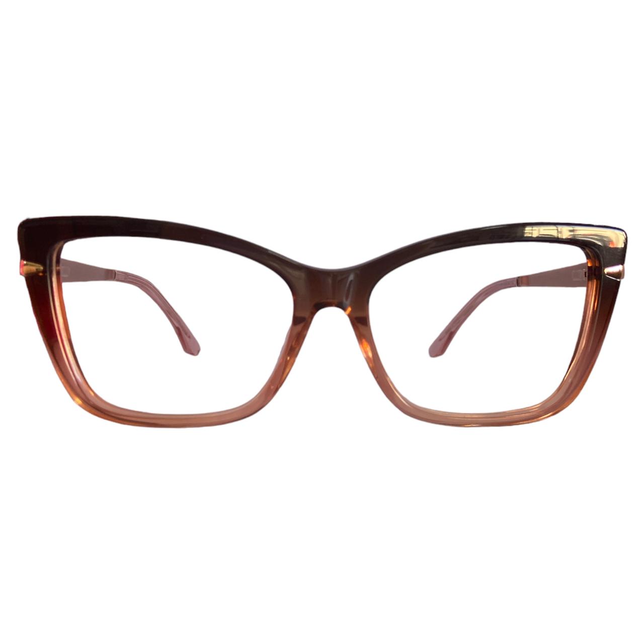 Armação V.Firenze com aro de acetato na cor marrom degrade e rosa transparente,hastes no metal nude.